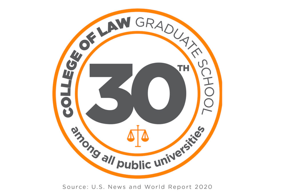 The University of Tennessee College of Law ranks 30th among all public law schools in the U.S., and 59th nationally among both public and private schools, according to the 2020 U.S. News and World Report graduate school rankings released today.