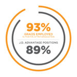 College of Law graduates remain successful finding jobs, both at the time of graduation and 10 months afterward, keeping the school’s post-graduation employment rates among the highest in five years. According to information shared earlier this month with the American Bar Association, 93% of 2018 graduates were employed 10 months after graduation.