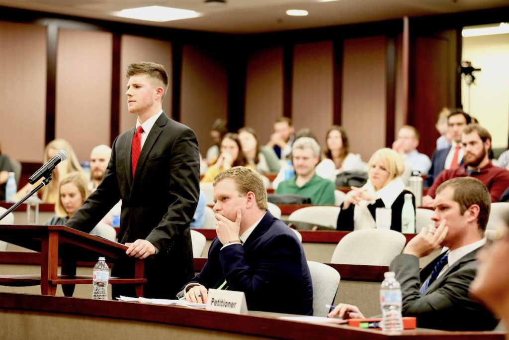 Joshua Anderson and Kaleb Byars argued their winning case on behalf of the petitioner in United States of America v. Daren Russell, while second-year student Cole Hodge argued on behalf of the respondent.