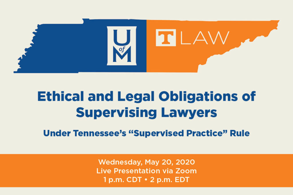 This CLE will address the requirements of the rule (Section 10.04 of Tennessee Supreme Court Rule 7), as well as the legal and professional conduct obligations of supervising attorneys acting under the rule. Presenters will also discuss the Tennessee Supreme Court’s recent temporary modification of the rule to extend the time of supervised practice for Spring 2020 law school graduates.