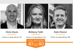Chris Davis (’19), Brittany Faith (’12) and Kyle Hixon (’08) are among the university’s honorees.
