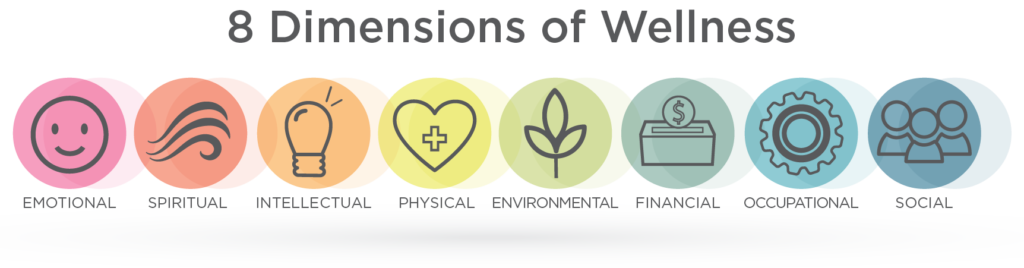 We encourage all members of our community to broadly consider these eight dimensions of wellness – emotional, spiritual, intellectual, physical, environmental, financial, occupational and social – and to give attention to each dimension to find a personal balance that is authentic to you.